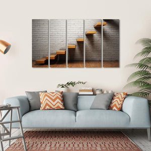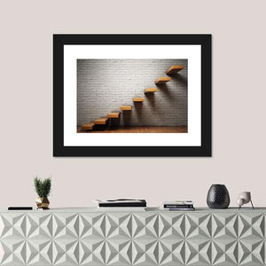 This modern canvas art features a staircase against a textured brick wall, embodying a minimalist and aspirational vibe. The diagonal lines and upward movement evoke a sense of progress, making it a fitting addition to contemporary décor.