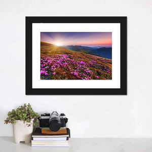 Pink Flowers On Mountain Panoramic Canvas Wall Art