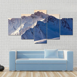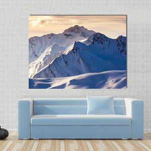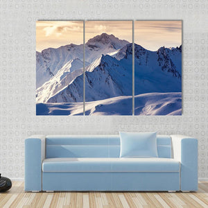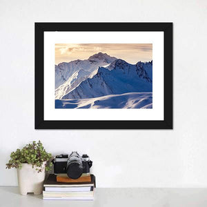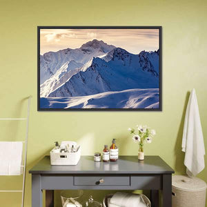 This captivating canvas art features a serene winter landscape of snowy mountains under a cloudy sky. With its majestic blue and white palette, it evokes a sense of vastness and tranquility, making it a perfect addition to any nature-inspired decor.