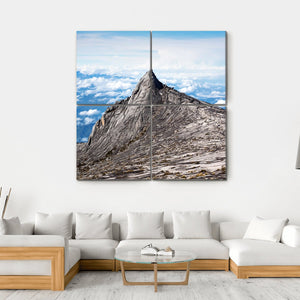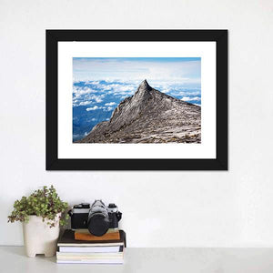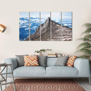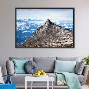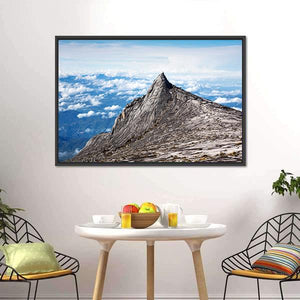 Experience the majesty of Kinabalu Mountain in Sabah with this striking canvas art. Featuring a serene landscape of a mountain peak surrounded by clouds, this piece captures the awe of nature with a palette of gray, white, blue, and green.