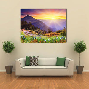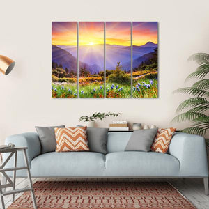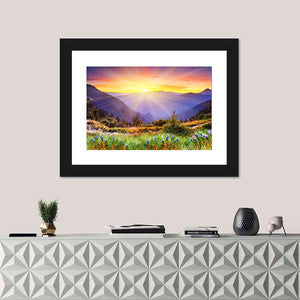 Experience the serene beauty of a mountain sunset with this stunning canvas wall art. The peaceful scene features glowing sun rays, vibrant wildflowers, and rich colors that evoke a sense of calm. Perfect for nature lovers looking to enhance their space.