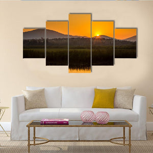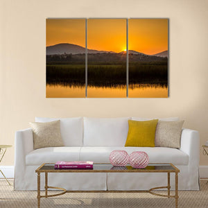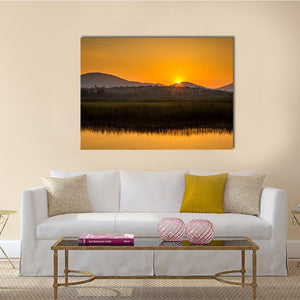 Golden Sunset Over Mountain Lake Canvas Wall Art