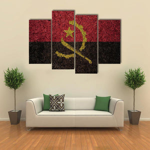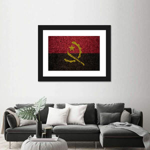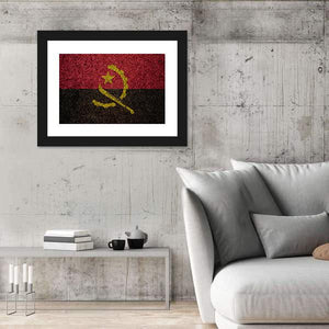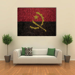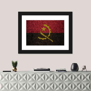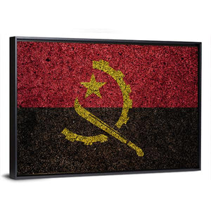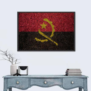 This canvas art features the Angola flag in bold red, black, and yellow hues. Its centered composition and textured effect bring a graphic, patriotic vibe to any space.