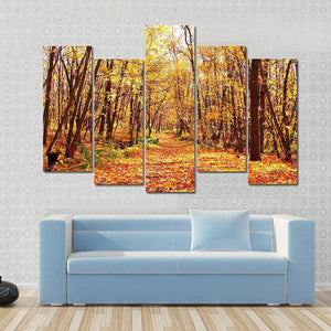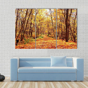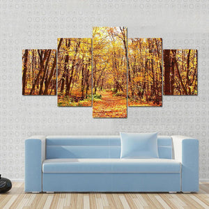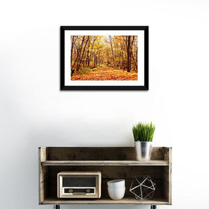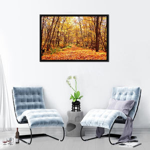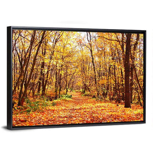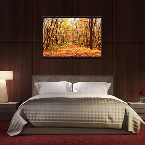 This artwork captures a serene forest path blanketed in autumn leaves, with sunlight gently filtering through the trees. Its realistic style and warm palette evoke a peaceful, autumnal vibe, perfect for nature lovers.
