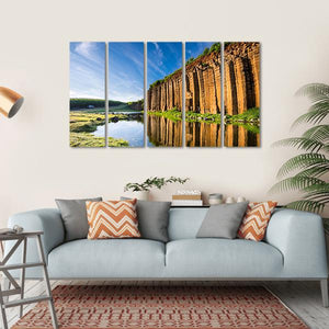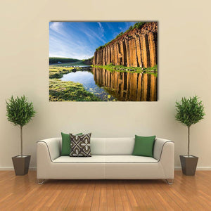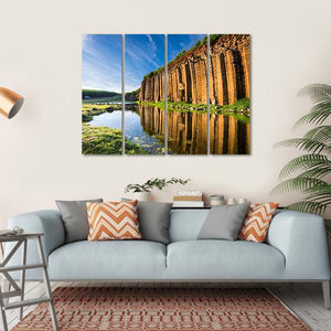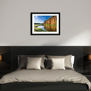 This canvas wall art captures the serene beauty of Taiwan's basalt columns, where majestic formations rise above tranquil waters. The natural colors of blue, green, and brown, combined with delicate reflections in the water and wispy clouds, create a peaceful atmosphere perfect for any room.