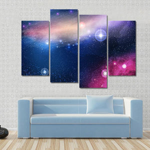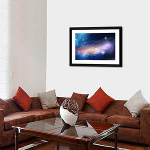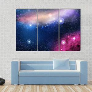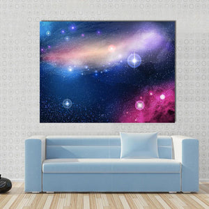 This canvas art captures a vibrant galaxy filled with swirling cosmic clouds and glowing stars. Its abstract and modern style makes it a stunning addition to any room decor, bringing a sense of wonder and depth to your space.