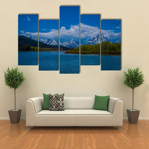 Yellowstone River with Snow-capped Mountains Canvas Wall Art