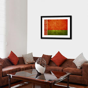 Belarus Flag Canvas Wall Art presents the national flag of Belarus with a vintage, textured treatment and an ornamental border pattern. The symmetric red, green, white and tan palette gives a patriotic, cultural mood and works well in modern or home decor. Place it where a quiet, nostalgic focal point that honors heritage is welcome.