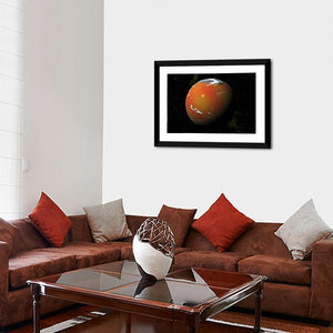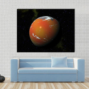 This canvas features a captivating orange gas giant against a dark starry background. With icy white features and hints of green nebula, it evokes a mysterious and cosmic atmosphere, making it a striking addition to your space or modern decor.