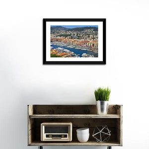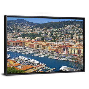 This canvas artwork captures a vibrant view of the harbor in Nice, France, featuring colorful boats and charming buildings against a backdrop of serene hills. Its picturesque scene brings a piece of the French Riviera into your home.