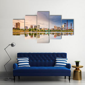 City Skyline at Sunset with Water Reflection Canvas Wall Art