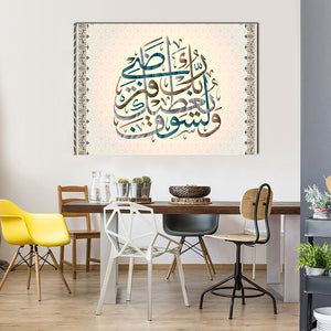 This expertly crafted canvas features the powerful verse 5 from Surah 93 of the Quran, “Your Lord will grant you, and you will be pleased,” rendered in elegant Islamic calligraphy. Designed to inspire reflection and admiration, this wall art combines spiritual significance with sophisticated aesthetics, making it a distinguished addition to any home or office. Its striking presence not only enhances your decor but also serves as a meaningful reminder of divine assurance and hope.