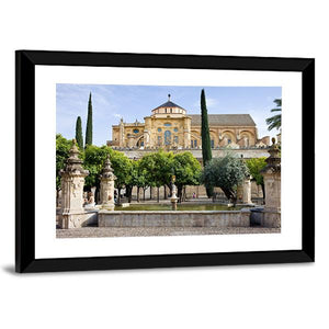 This canvas art beautifully depicts the serene Cathedral Mosque in Cordoba, featuring ornate arches and lush cypress trees. Its sunny atmosphere invites a sense of tranquility, making it an ideal addition to any historic-themed décor.