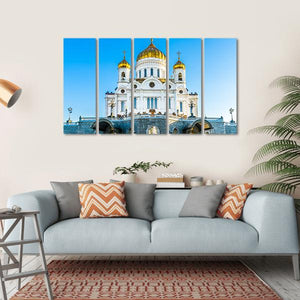 This captivating canvas features the Cathedral of Christ the Savior, showcasing its grand architecture and stunning golden domes against a serene blue sky. Its majestic design and realistic portrayal make it a striking addition to your wall decor.
