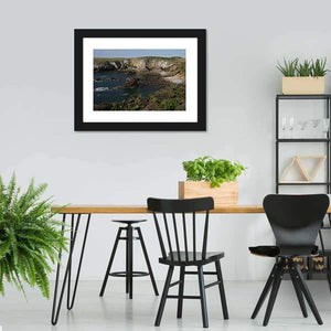 Featuring a serene landscape of coastal cliffs, this canvas artwork captures the rugged beauty of the ocean's edge. The rich palette of blues, greens, and browns evokes a natural atmosphere, making it an ideal addition to any room seeking a touch of tranquility.