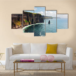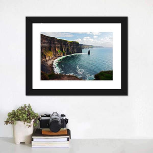 This canvas captures the majestic Cliffs of Moher in Ireland, showcasing dramatic coastal cliffs and the crashing waves of the ocean. The serene blend of blue, green, and brown evokes a grand atmosphere, perfect for any nature-inspired décor.