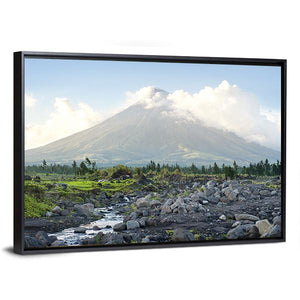 This canvas art depicts the majestic Mayon Volcano, merging natural beauty with serenity. The vibrant palette showcases greens, blues, and earthy tones, creating a calming atmosphere that's perfect for any nature lover.