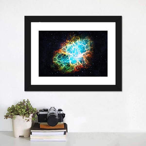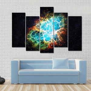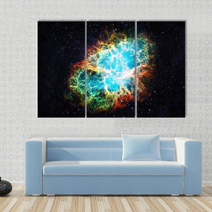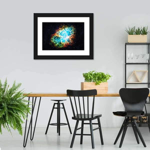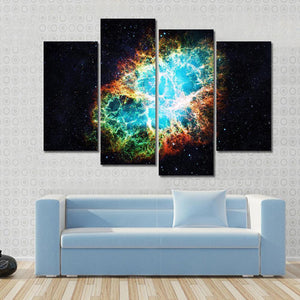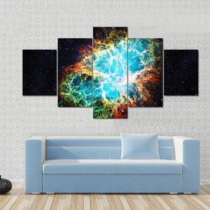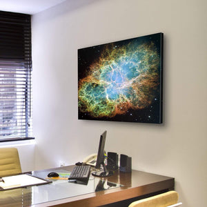 This striking canvas art captures the awe-inspiring beauty of the Crab Nebula, featuring vibrant gaseous clouds and twinkling points of light. The abstract composition in rich shades of blue, green, and orange invites a sense of cosmic wonder into your space.