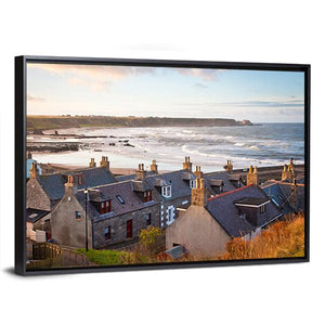 Capture the serene beauty of Cullen, Scotland with this landscape canvas art. Featuring a coastal village and its charming stone houses, this piece brings a tranquil atmosphere to your space.