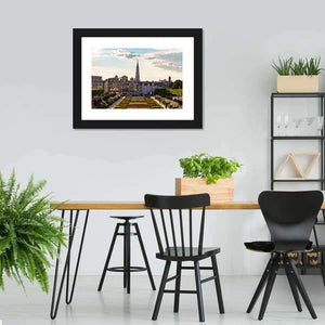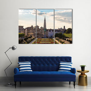 Experience the beauty of Brussels with this vibrant canvas art featuring elegant buildings, ornate gardens, and a towering gothic spire. Its serene and grand atmosphere makes it a perfect addition to any room.