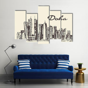This hand-drawn sketch features the iconic Doha skyline with striking skyscrapers. Its urban and graphic style brings a modern touch that is perfect for city lovers and art enthusiasts.