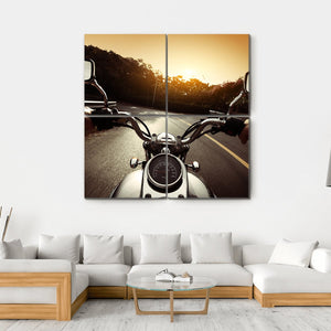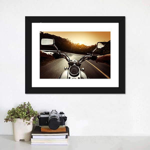 Experience the thrill of the open road with this dynamic canvas print featuring a motorcycle rider against a vibrant sunset backdrop. The realistic depiction captures a sense of adventure and freedom, making it a perfect addition to your wall decor.