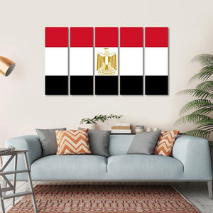 This canvas art features the Egyptian flag, complete with the Eagle of Saladin, celebrating national pride. Its bold colors of red, white, and black, paired with a graphic style, evoke a sense of patriotism and history.