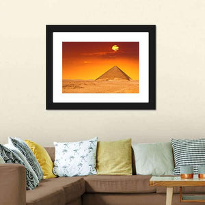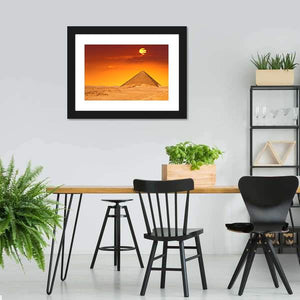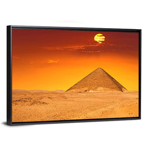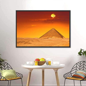 This canvas wall art features a majestic pyramid set against a striking red sky. The warm, arid tones and realistic details evoke a sense of ancient wonder, making it a captivating addition to any décor.