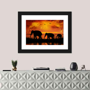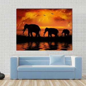 Elephants on a beautiful sunset Canvas Wall Art is designed to resonate and spark a mix of feelings. Whether you love art or just looking to decorate your home, this striking and powerful canvas print is an eye-catching decor element that can't go unnoticed.