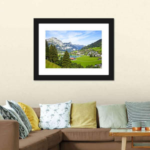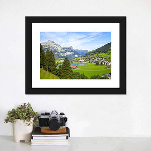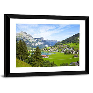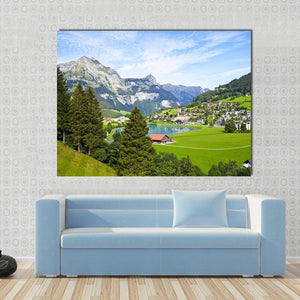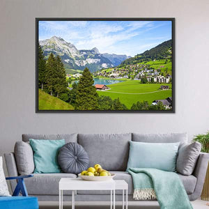 This canvas art captures the serene beauty of an alpine village, surrounded by lakes and majestic mountains. With its soothing palette of greens and blues, it's perfect for adding a touch of tranquility to your space.