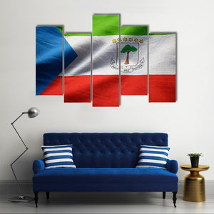 Equatorial Guinea Flag Canvas Wall Art presents a photo-realistic depiction of the national flag, including the coat of arms with its tree and motto, arranged across a diagonal divide of green, white and red with blue and brown accents. It offers a proud, patriotic mood and fits modern homes and home offices as graphic wall decor.