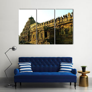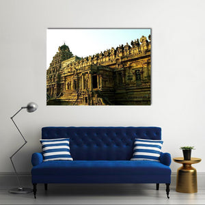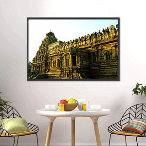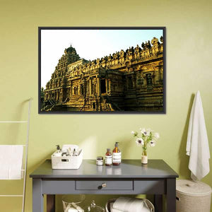 This canvas art captures a majestic temple facade, showcasing ornate carvings and tiered towers. Its rich palette of gold, tan, and brown creates an ancient vibe, making it a perfect fit for any room decor that embraces historical themes.