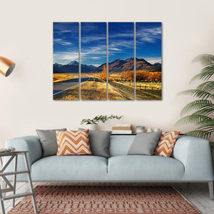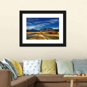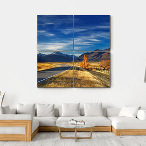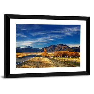 This canvas art showcases a stunning view of Mount Cook surrounded by serene farmland. The palette features rich blues, browns, and hints of gold, creating a majestic atmosphere perfect for nature lovers.
