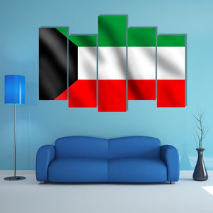 A bold canvas print of the Kuwaiti flag, shown with a wavy texture and a graphic, symmetrical layout. The black, white, red and green palette gives a patriotic, bold presence that suits room decor in a house or office. The graphic style fits modern interiors that want a clear flag motif.