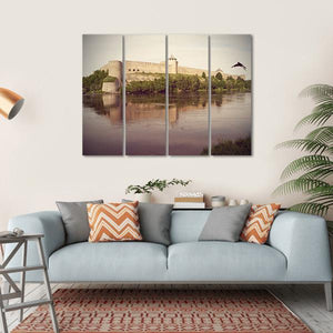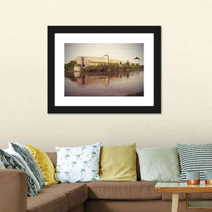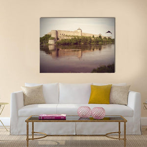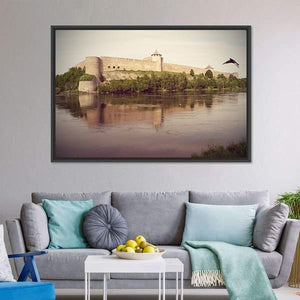 This striking canvas captures a historic fortress in Ivangorod, nestled by a serene river. With its photorealistic details and majestic palette of browns, greens, and blues, it evokes a sense of calm and timeless beauty.