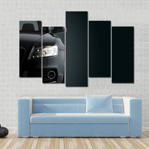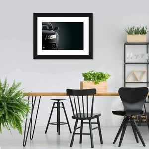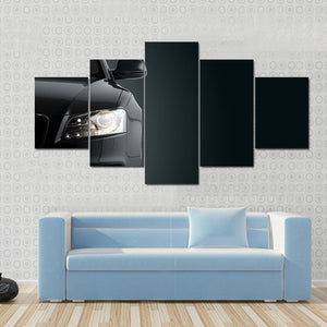 This canvas art captures the front of a sleek black sports car, illuminated headlights creating a powerful and sophisticated vibe. With its modern design, it makes a striking addition to any wall decor.