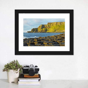 This stunning canvas wall art depicts the serene beauty of Giant's Causeway in Ireland, featuring coastal cliffs and striking rock formations beside the ocean. The natural colors of blue, green, and gray create a calming atmosphere, making it a wonderful addition to your home décor.