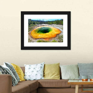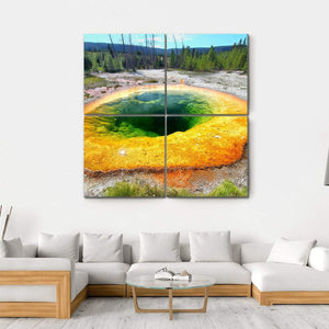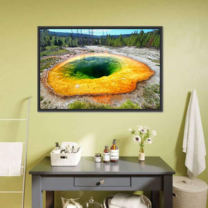 This vibrant canvas captures an overhead view of Morning Glory Pool, a stunning geothermal area in Yellowstone National Park. The circular composition showcases the natural beauty of the colorful rings created by thermophilic bacteria, evoking a sense of awe and connection to nature.