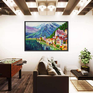The Hallstatt Oil Painting Austria Canvas Wall Art captures the serene beauty of this iconic Austrian village with expert brushwork and rich textures. This striking canvas print adds a sophisticated touch to any space, blending artistic elegance with cultural charm. Ideal for art enthusiasts and home decorators alike, it serves as a captivating focal point that enhances your interior with timeless appeal.