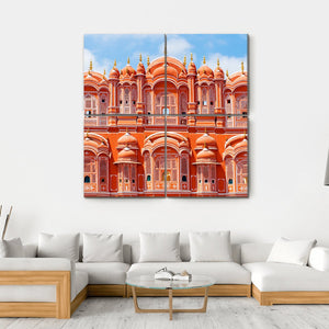 Capture the essence of Jaipur's Hawa Mahal with this striking wall art, featuring its ornate pink sandstone facade and intricate latticework. The composition showcases a grand atmosphere, perfect for adding a historic touch to your home decor.
