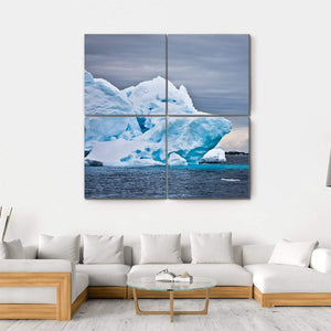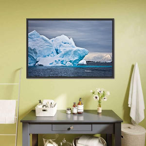 This stunning canvas art features a majestic iceberg against a dark, cloudy sky, embodying the serene beauty of Antarctica. The layered ice formations and distant snow-capped mountains evoke a sense of cold tranquility, making it an ideal piece for nature lovers.