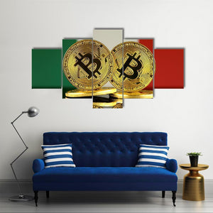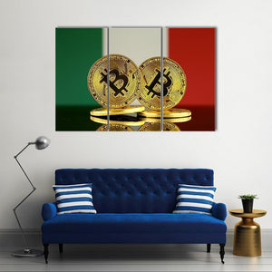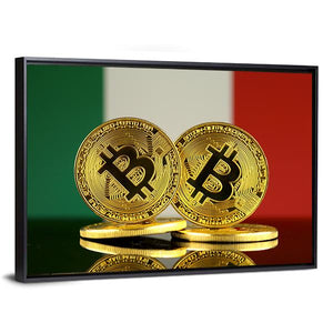 Stacked Bitcoin Coins with Italian Flag Canvas Wall Art