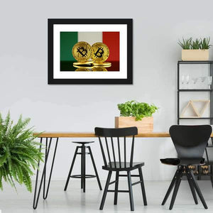 This canvas art showcases two stacked bitcoin coins against the vibrant backdrop of the Italian flag. Its modern graphic style and symmetrical composition make it a captivating piece, perfect for any financial enthusiast or art lover.