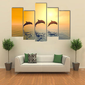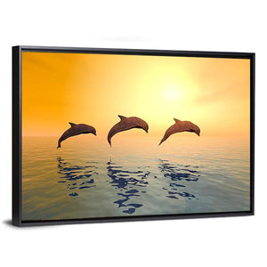 This beautiful canvas art features three dolphins jumping over water, capturing a serene and energetic mood. With vibrant hues of orange and blue, it’s a perfect addition to your wall decor, bringing a touch of nature indoors.