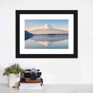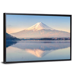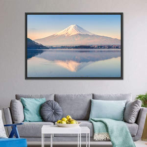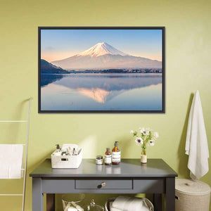 This canvas artwork captures the breathtaking Lake Kawaguchiko, featuring the majestic Fuji mountain and serene reflections on calm waters. With a soothing palette of blues and soft pastels, it brings a calming atmosphere to any space.