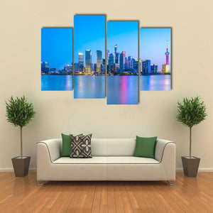 Lujiazui Night Skyline with River Reflection Canvas Wall Art