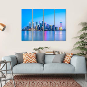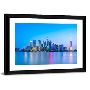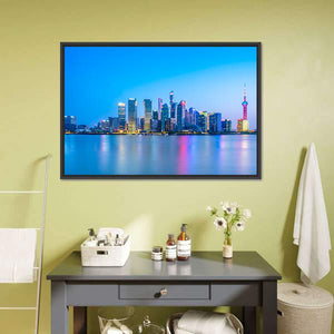 Capture the essence of modern China with this vibrant canvas art depicting the Lujiazui skyline. The serene reflections of tall skyscrapers in the water, accented by evening lights, create a captivating atmosphere for any space.