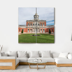 This canvas art captures the grandeur of a palace courtyard in Germany, featuring ornate facades, manicured hedges, and a serene fountain. The harmonious colors of red brick, green grass, and blue sky create a historic atmosphere that enhances any setting.