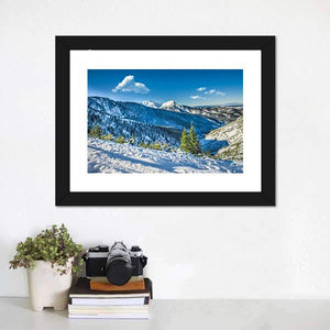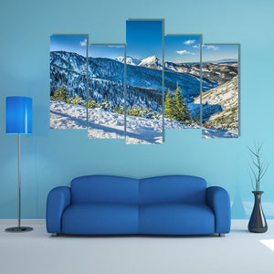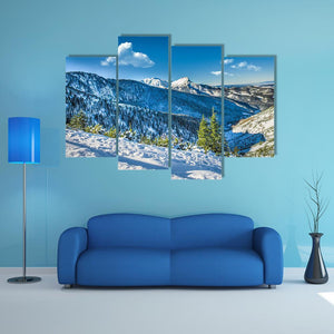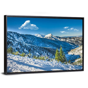 This canvas features snow-capped mountains and evergreen trees under a crisp blue sky. The serene atmosphere and realistic detail capture the majestic beauty of wintertime in Poland.
