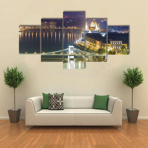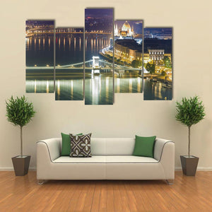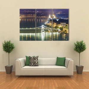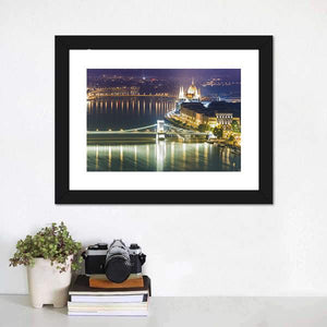 This photorealistic canvas captures Budapest’s parliament building, an illuminated bridge and the river-front skyline at night, with clear reflections on the water. The blue, yellow and white palette creates a majestic, tranquil and vibrant atmosphere that suits modern living rooms and offices.
